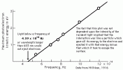 where each incoming photon of light has an energy of hf and W0 is the binding energy (or work function) of the metal. Clearly, electrons could be released from the metal only if the incoming light was of a frequency such that hf > W0 , irrespective of the intensity of the radiation! Could it be that simple? The experimentalist Phillipe Lenard disliked Einstein’s idea intensely and set about disproving it in a series of experiments; years of careful experimentation showed that Einstein’s theory was exactly right in its predictions (see here for more details).